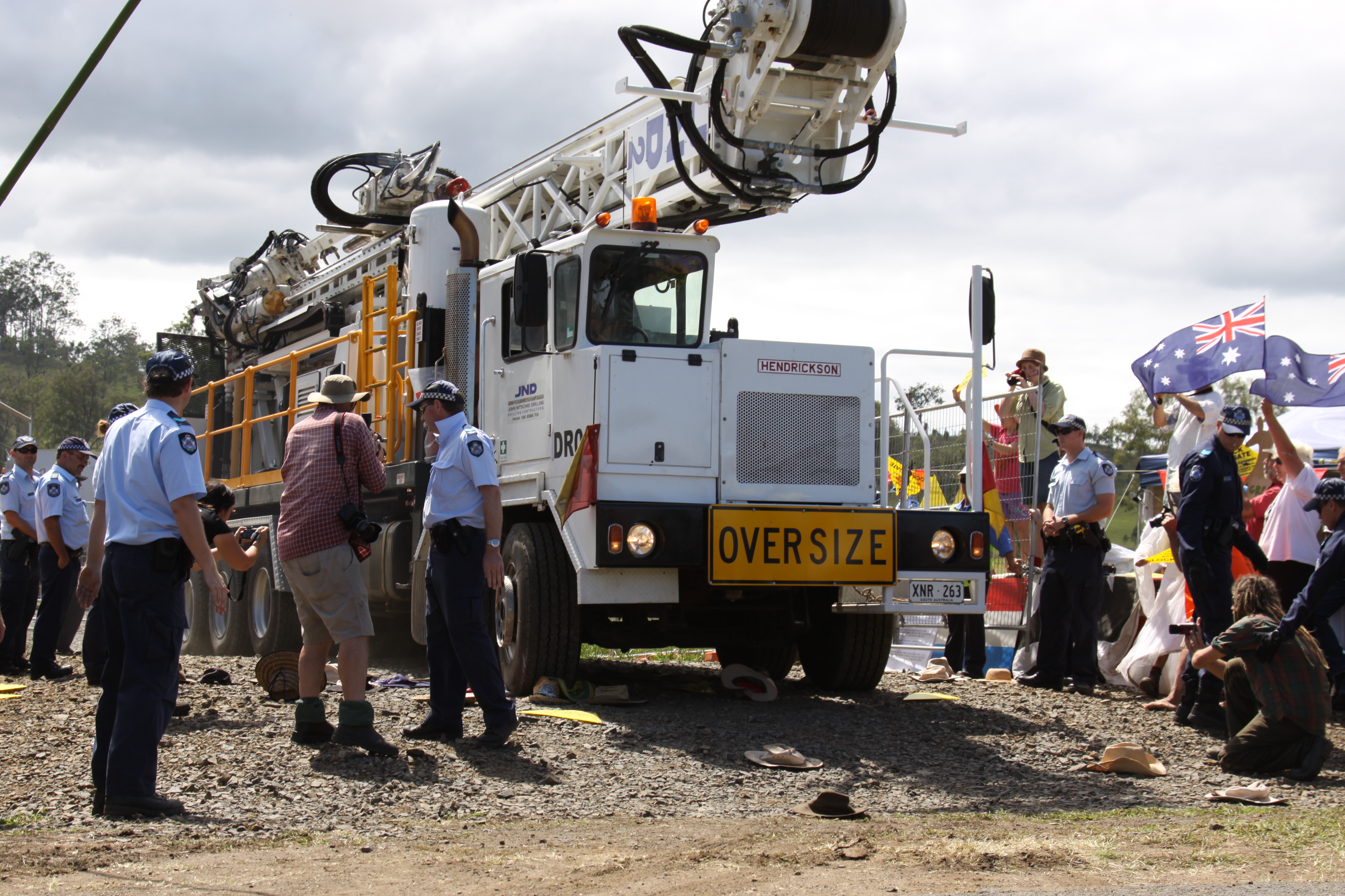 - On the first morning of the blockade, 45 local residents sat across the gate to stop Arrow workers accessing the site. Police arrived to escort the drillers, but still locals remained. Nine people were arrested that morning, in a pattern which continued for 10 days and resulted in a total of 15 arrests and significant disruption to Arrow's drilling activities. (all received no conviction for disobeying a police order, general fines were between $200 and $250.)